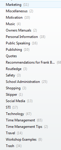 Public Speaking—This notebook includes everything from tips on relating to the audience to how to design better PowerPoint slides. What hobbies, avocations, or major roles do you have in your life? Chances are, you will want a notebook for each one.