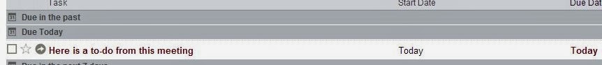In practice, you would take notes in Evernote. Evernote automatically date-and-time stamps the notes. Give the note a name and take your notes. Some of what you enter will actually be be "to-do" items which need to be performed. You will need to enter these items on your to-do list. Failure to do so will result in responsibilities falling through the cracks because they are hidden within notes, but never make their way to the to-do list.