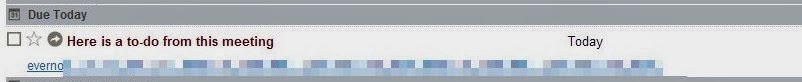 Any item preceded by the check box and located in the Journal notebook, is sent from Evernote though my Gmail account to my digital to-do list. I use Toodledo. Here is how the note appears in Toodledo: